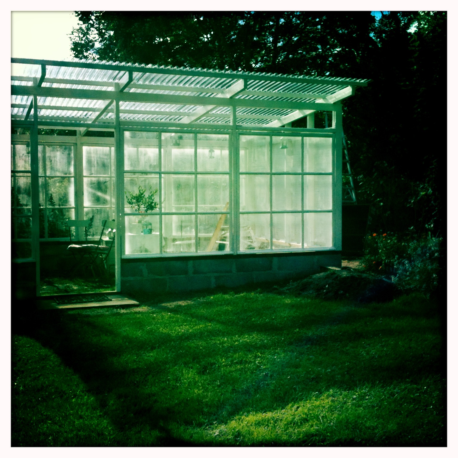 Ihana on! Eikä ikunoiden likaisuus pilaa fiilistä, sehän on vain likaa. Mulle kelpais myös tuollaiset nopeat kaverit rakentamaan pihaan kaikenlaista. Kasvihuonetta ei vielä ole, haaveissa kuitenkin... Vanhoja ikkunoita löytyy kyllä, niistä sais sellaiset kasvulavat, joissa avattavat lasiluukut. Valokate on näppärää, pergolan kattamiseen olen sitä ajatellut.